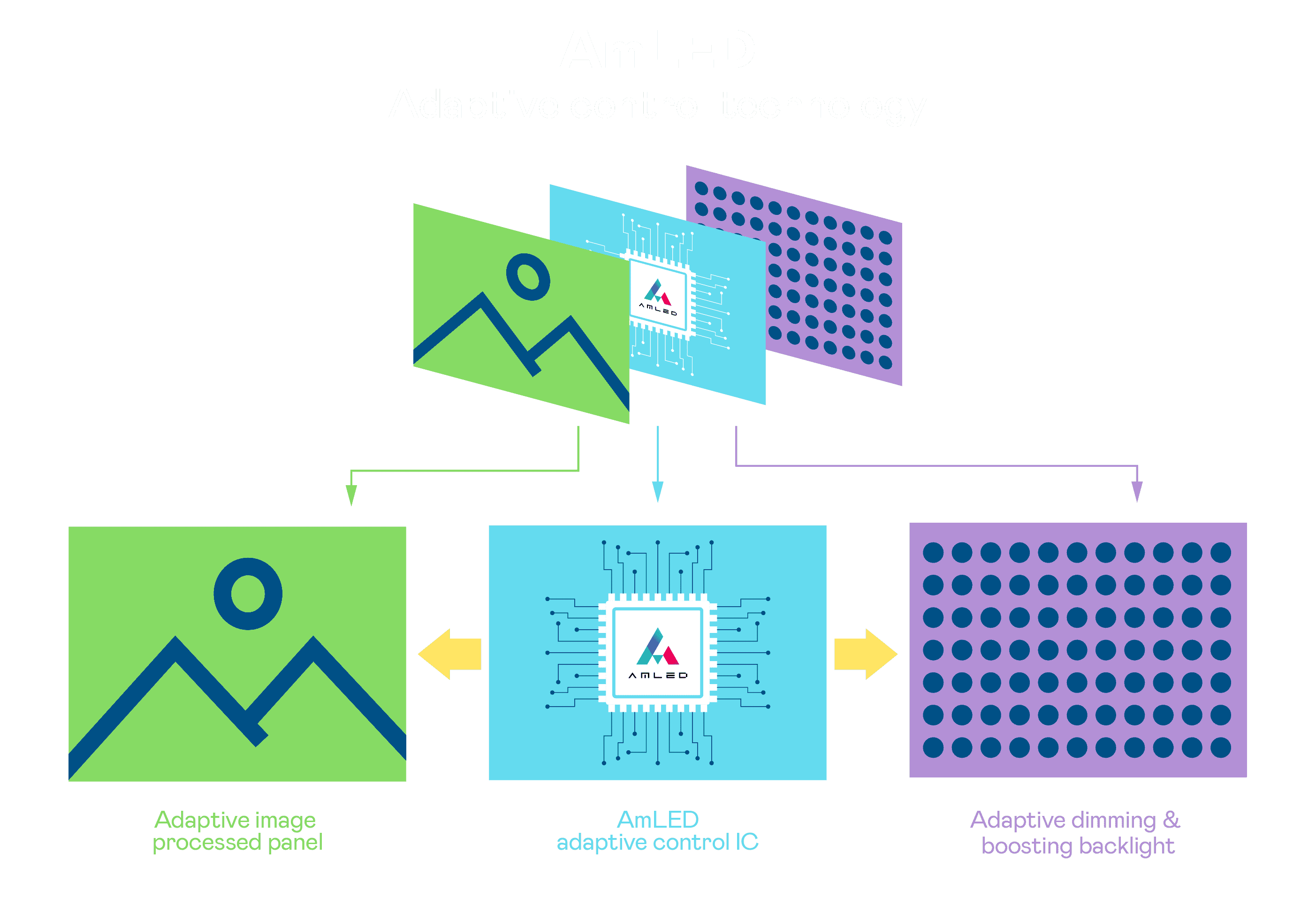 透过动态影像处理和 Mini LED 背光模组的动态对比及峰值亮度调变,,AmLED 显示技术精准细致的局部调光效果达到超过 1,000 nits 的超高亮度表现,,,亮部更明亮、、暗处更深邃,,,呈现真实黑色中的亮度以及平滑灰阶,,,,打造出具层次分明的精致光影细节。。